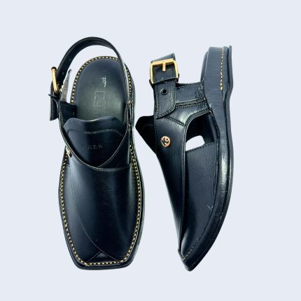 Black Peshawari Chappal – Handcrafted Elegance for Men