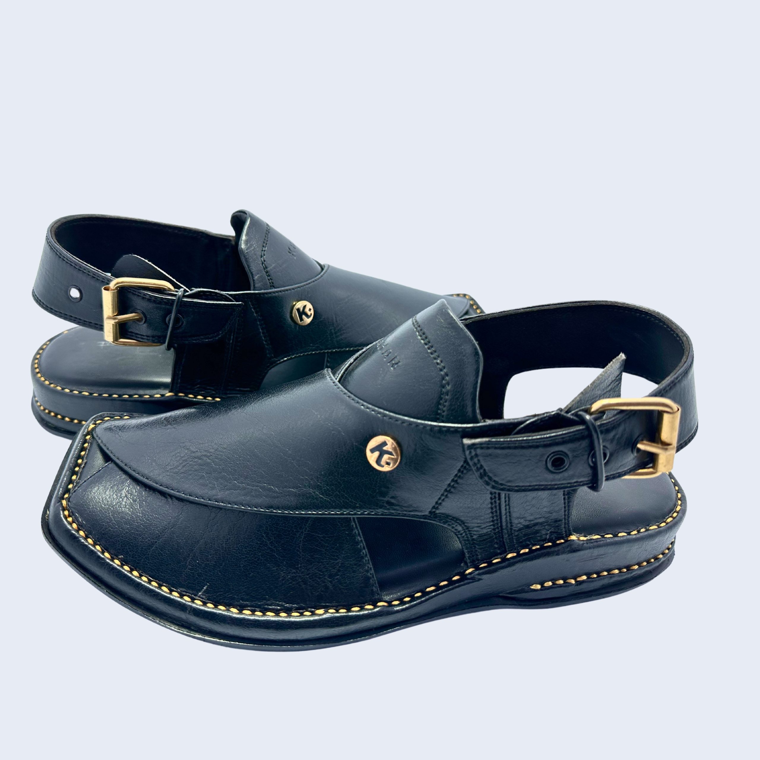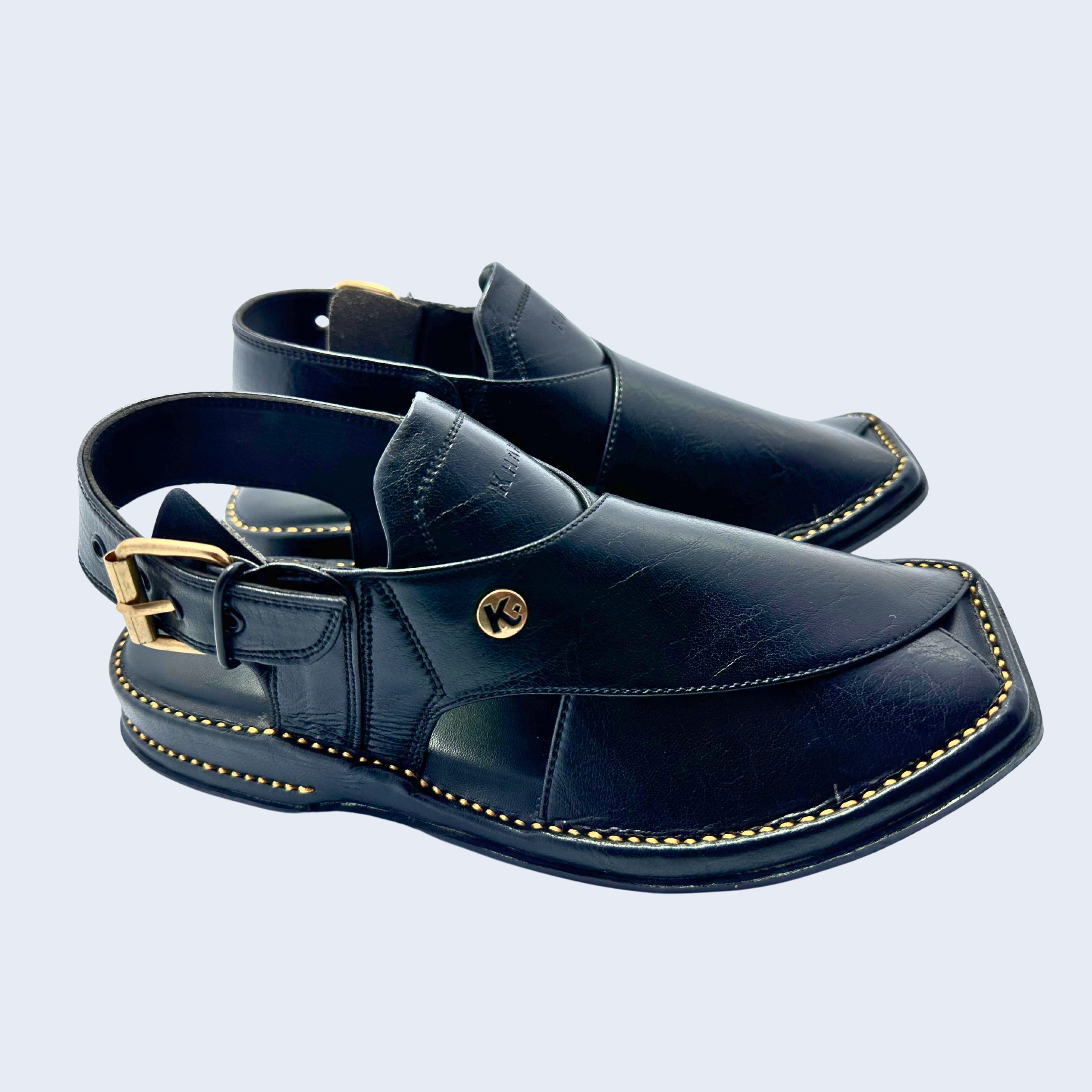 Black Peshawari Chappal – Handcrafted Elegance for Men