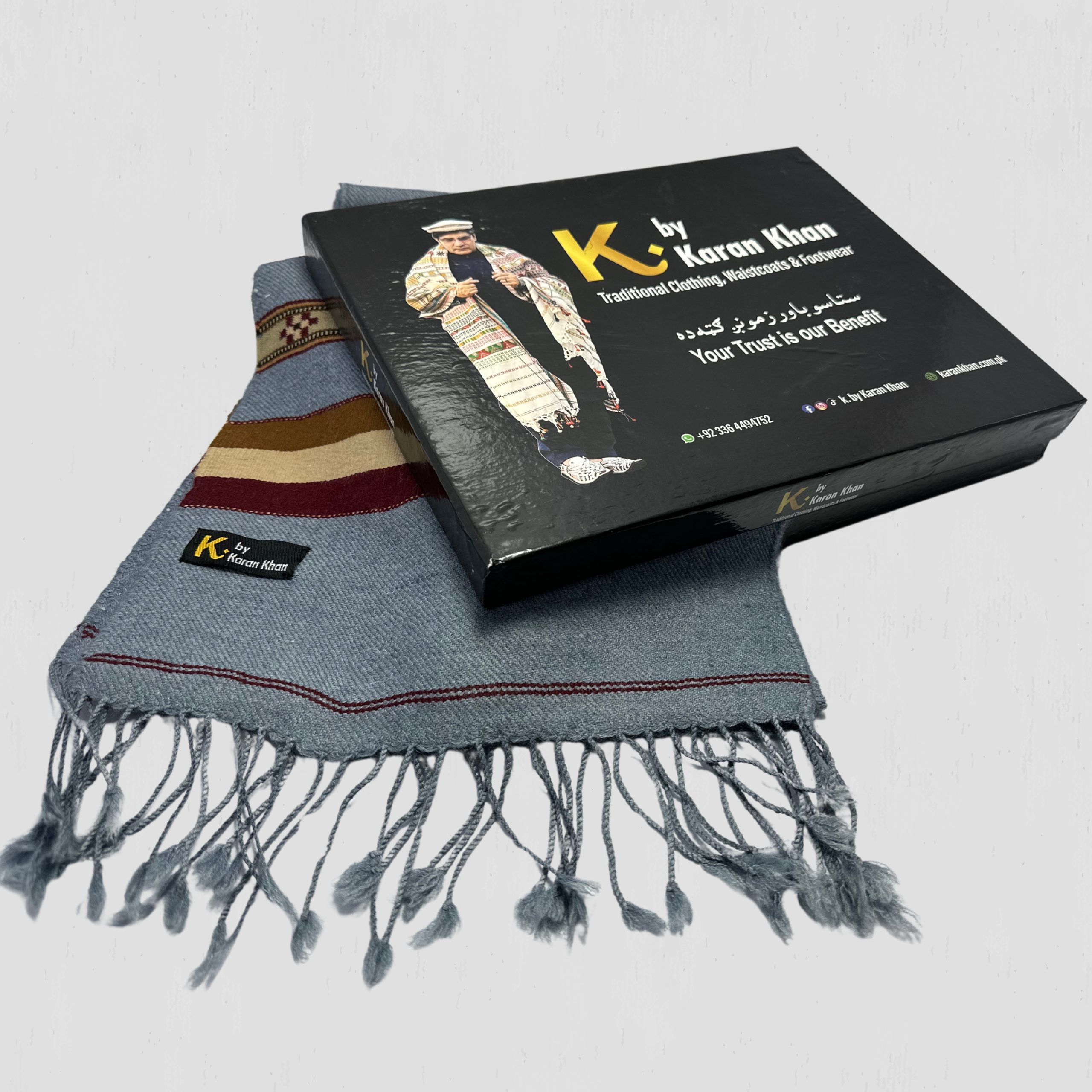 Stay stylish, warm, and connected to heritage with the K. By Karan Khan Signature Muffler Collection!