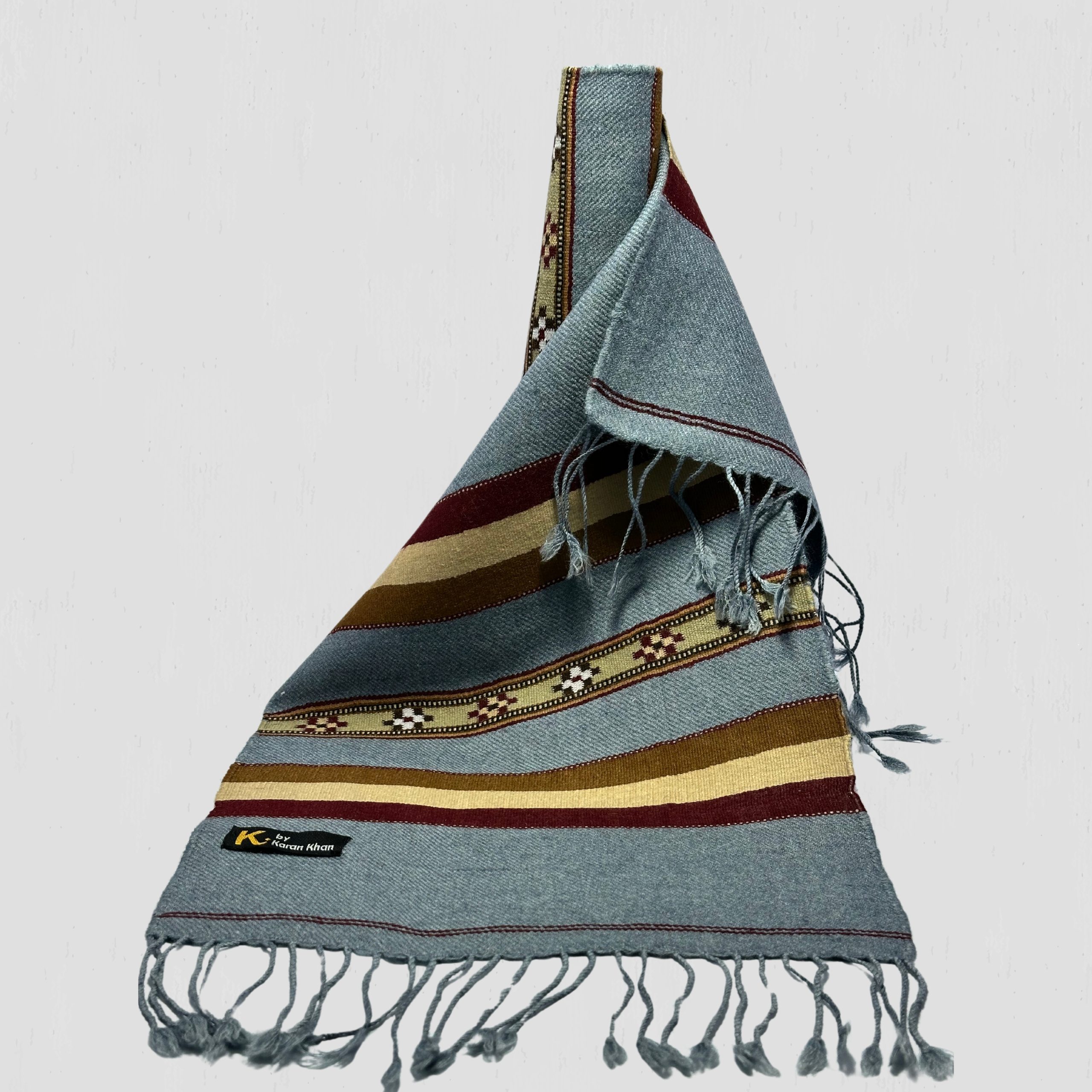 K. By Karan Khan – Handwoven Woolen Muffler (Sky Blue with Traditional Stripes)