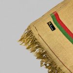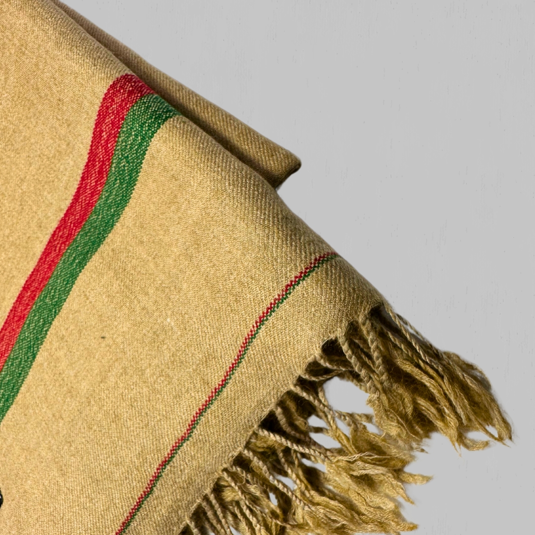 Handwoven with fringed edges, showcasing traditional craftsmanship
