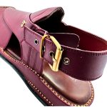 Introducing our Royal Maroon Peshawari Chappal, a perfect fusion of heritage and modern sophistication. These handcrafted Chappal are made from premium quality leather, ensuring durability and timeless style. The deep maroon color adds a touch of royalty, making them ideal for both casual and formal occasions. Designed for all-day comfort, they feature a soft cushioned insole and a sturdy black rubber sole for excellent grip. The adjustable gold-toned buckle ensures a secure and customized fit. Whether paired with traditional attire or smart casuals, these luxury Peshawari Chappal are a must-have for the modern gentleman.