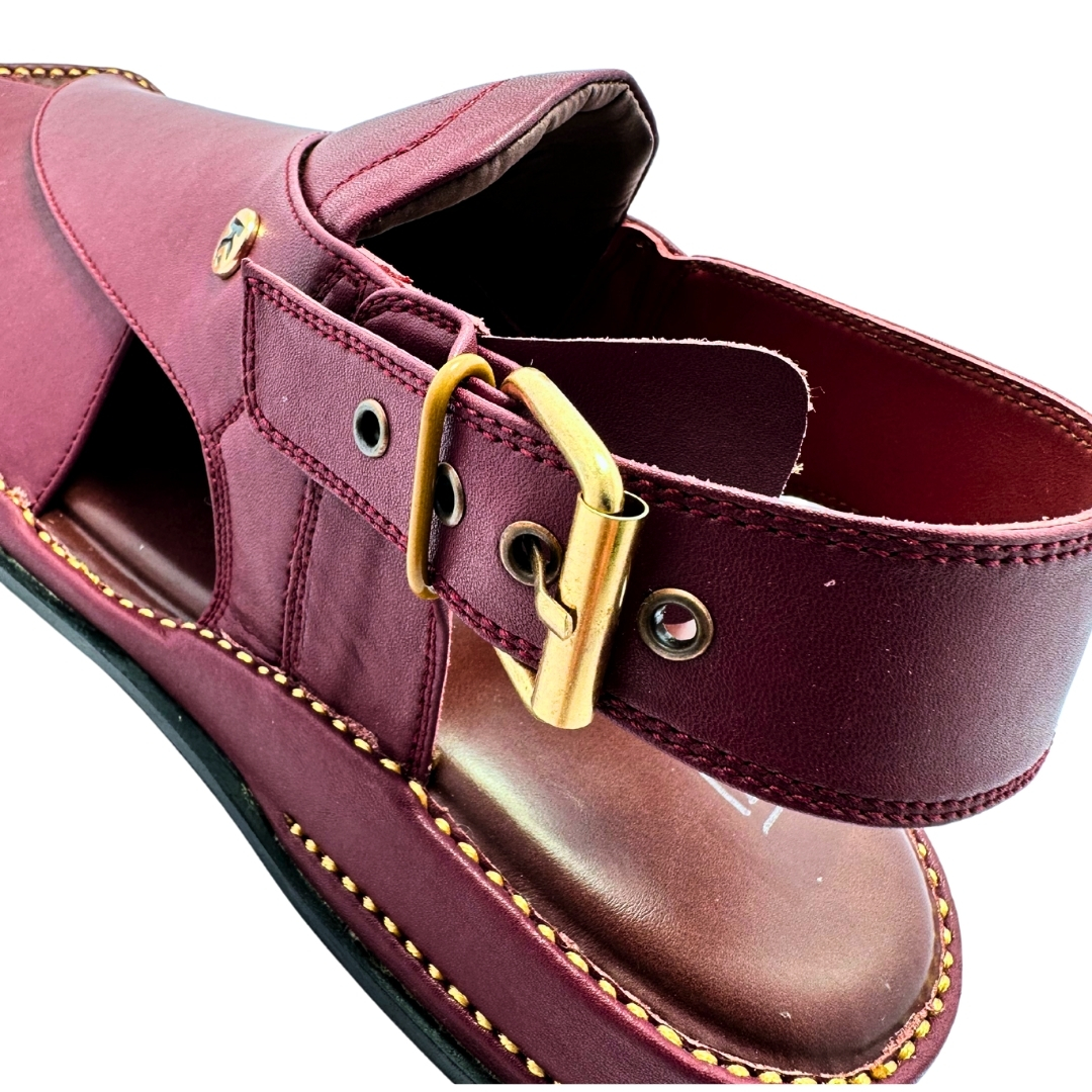 Royal Maroon Peshawari Chappal – Handcrafted Elegance for Men